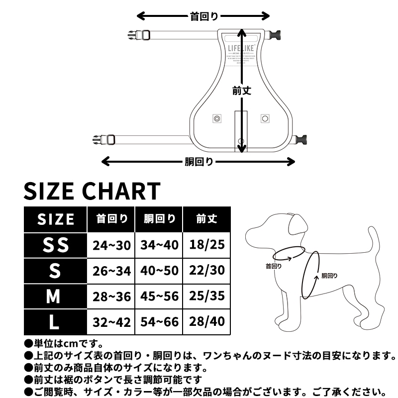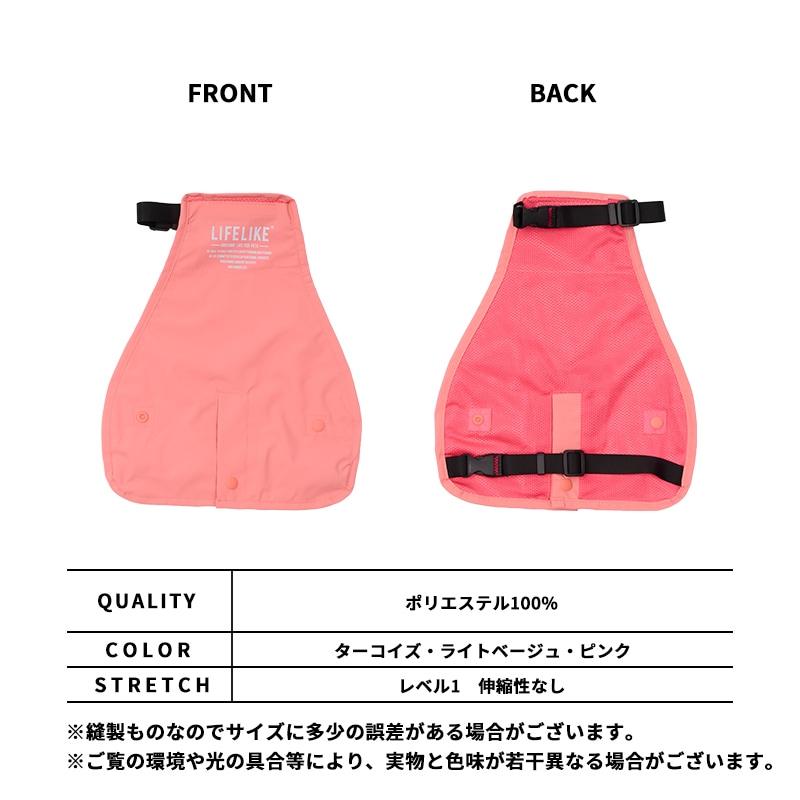 男の子のワンちゃんにも配慮し、前丈を短くできる調節ボタン付き。体型や用途に合わせて長さを変えられます。表地には遮熱生地を使用。アスファルトの照り返しに配慮した設計になっています。裏地には蒸れにくいメッシュ素材を採用。温度の高い雨の日でも、快適な着心地をキープします。