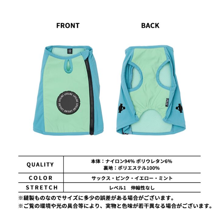 氷を入れて、そのままお出かけ!?LIFELIKEから新発想のクーリングベストが登場です!氷のう袋を内蔵できるデザインは、新感覚の暑さ対策アイテム。氷を補充できるので、保冷剤に不安がある日のお出かけにも◎シンプルなアウトドアデザインとマルチカラーで、どんな毛色にもなじみやすいデザイン。キャップ部分のLIFELIKEロゴがアクセントに。背中に収納された氷のうは取り外し可能で、お手入れや氷の交換もスムーズ。背中が大きく開くファスナー仕様で、着脱も簡単◎両脇にはコードアジャスター付き。回りをフィットさせ、収納された氷のうの揺れを防ぎます。裏地には、背中に当たる氷嚢の衝撃をやわらげるクッション性のあるメッシュ生地を使用しています。背中へのあたりをやさしくし、快適な着心地をサポートします。表地には汚れにくいナイロン生地を使用。お手入れも簡単で、アウトドアシーンや海辺へのお出かけなど、アクティブな場面でも快適に使える一着です。