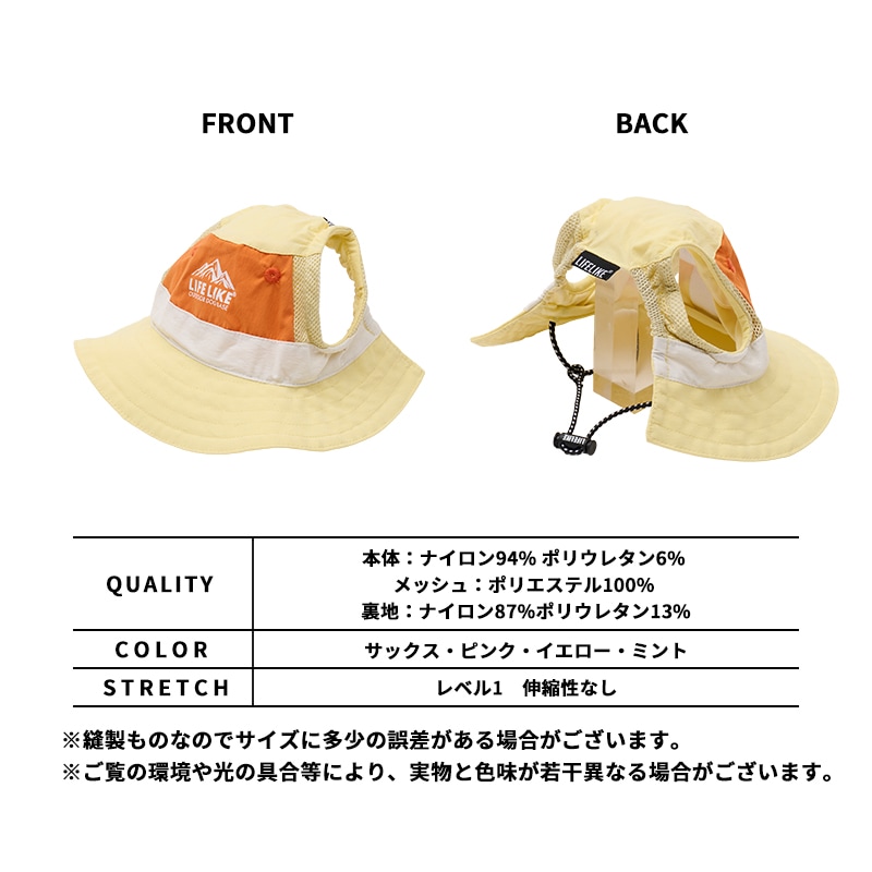 毎年大人気のマルチカラーハットが、今年はやさしいシャーベットカラーで登場。彩度を抑えた絶妙な配色で、アウトドアスタイルをぐっと今っぽい印象に。ホワイトであしらったマウンテンモチーフが、爽やかなアウトドアらしさをプラス♪ツバが目にかかりにくく視界を遮らないので、帽子が苦手なワンちゃんにもおすすめ♪内側のベルトで深さの調整が可能。ズレにくく、快適なかぶり心地に。丈夫でさらっとしたナイロン生地を使用。軽くて乾きやすく、アクティブなシーンにもぴったりです。
