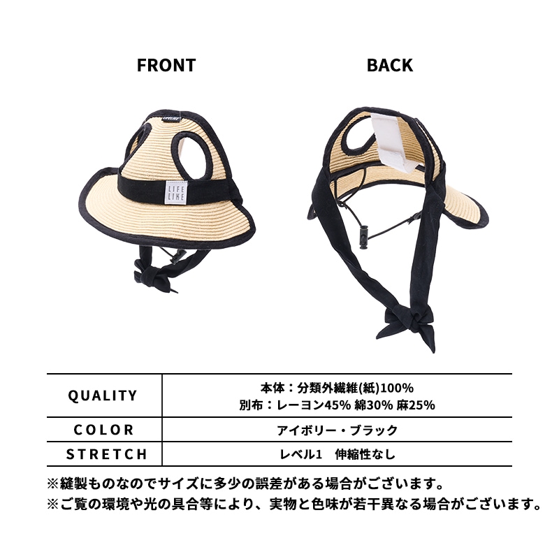 本格的な麦わら風素材に、パイピングの配色がレデイな雰囲気をプラス♪見た目にも上品で爽やかなストローハットです。夏のリゾートスタイルにも◎リネン混生地のリボンとパイピングが、本格的な雰囲気をプラス。首下で結ぶ存在感のあるリボンが、コーディネートのアクセントに♪ツバが目にかかりにくく視界を遮らないので、帽子が苦手なワンちゃんにもおすすめ♪内側のベルトで深さの調整が可能。ズレにくく、快適なかぶり心地に。本体には軽くてハリのあるペーパータイプの麦わら風生地を使用。見た目は本格的ながら軽く、ワンちやんにも負担になりにくいかぶり心地です。※素材の特性上、水洗いは避けてください。